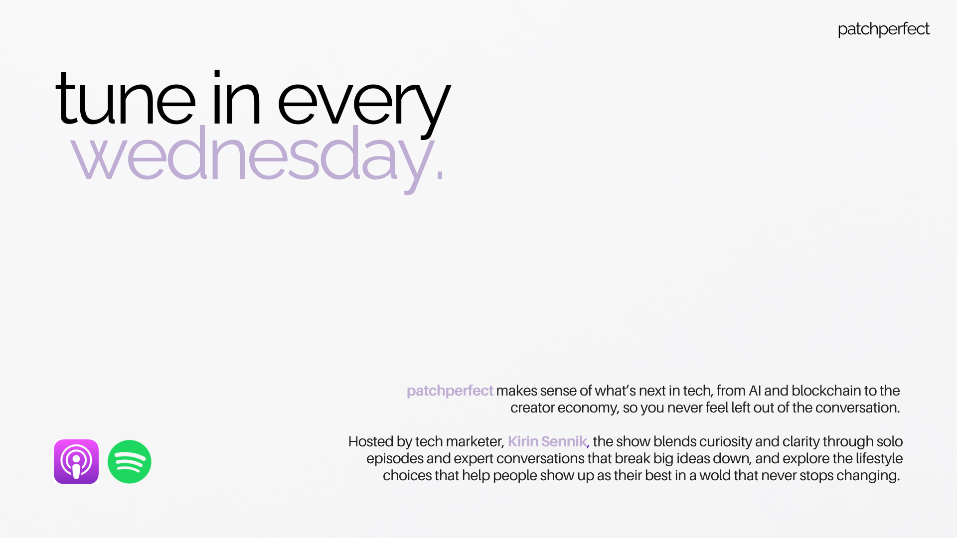 “patchperfect” is a technology and lifestyle podcast dedicated to making emerging tech understandable, relevant, and human.